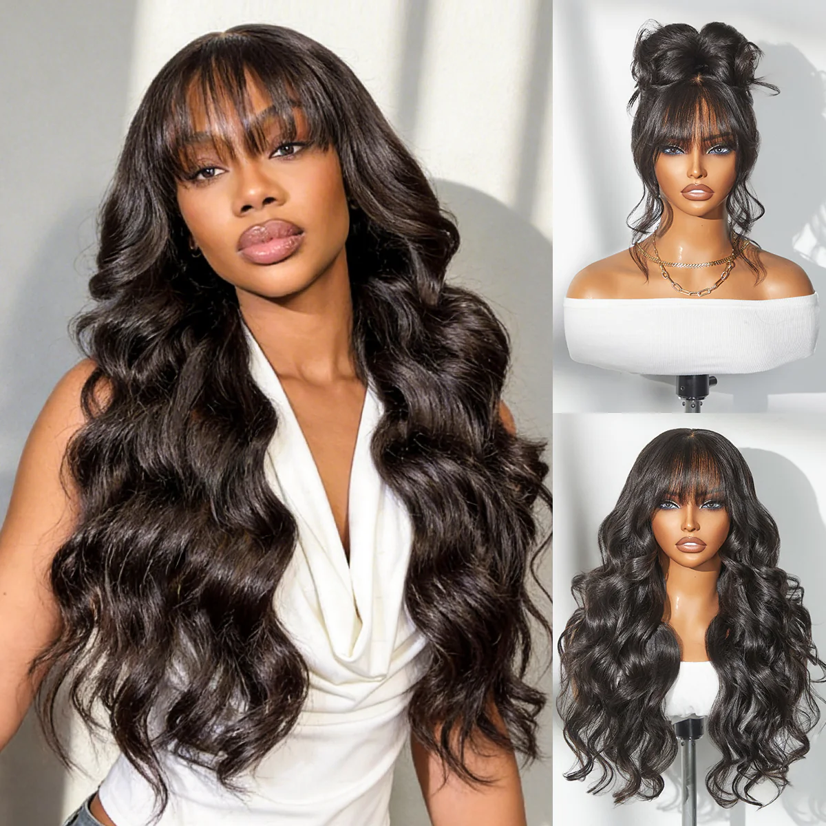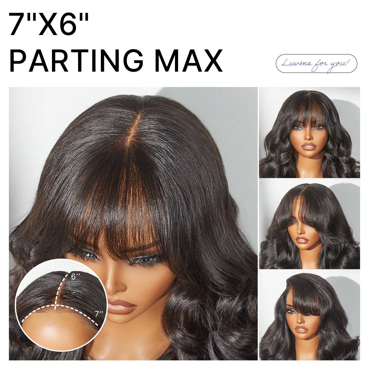 Luvme All-Day Comfort™ Wig 180% Density Loose Body Wave Glueless 7×6 Closure HD Lace Human Hair Wig with Bangs Pre-Cut Lace